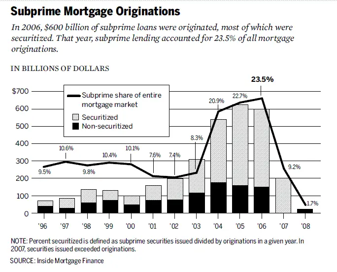 2000年代中期,华尔街将次级抵押贷款——流动性差、高风险贷款——转化为复杂的证券。