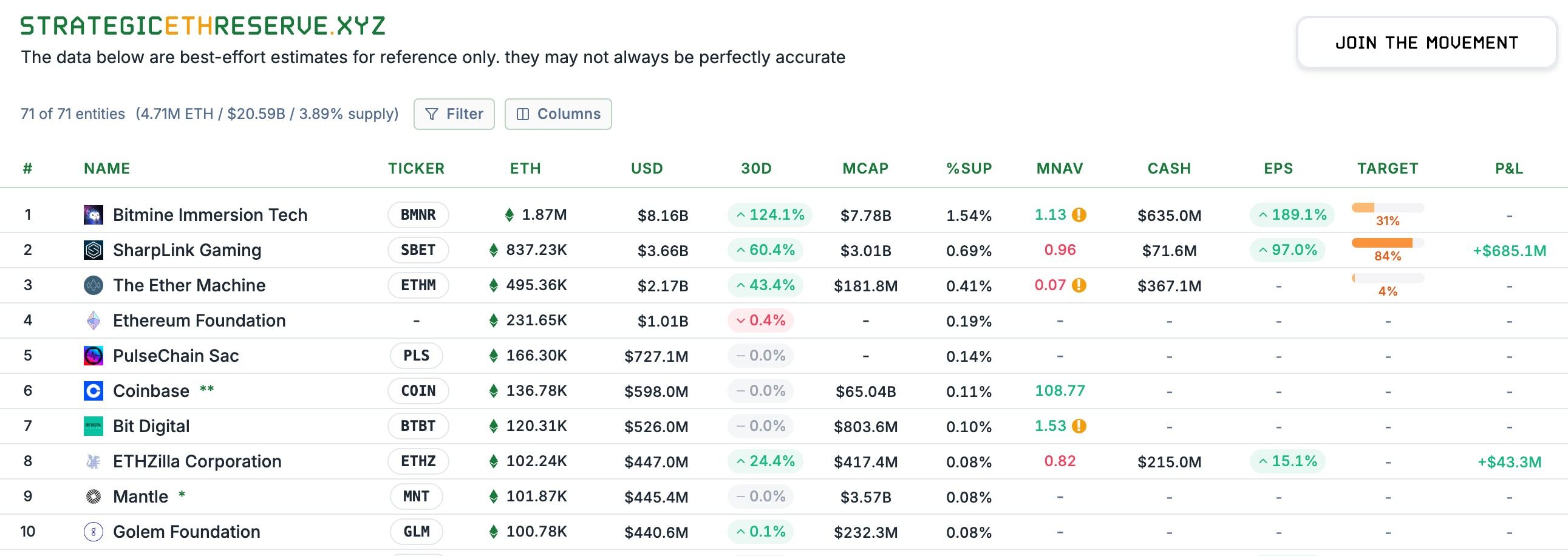 Strategic ETH Reserve 数据显示,截至北京时间 9 月 4 日,BItMine 的 ETH 持仓已达到 187 万枚,价值约 81.6 亿美元,BitMine 的掌舵人 Tom Lee 早已成为了当前整个以太坊生态话语权最重的巨鲸。