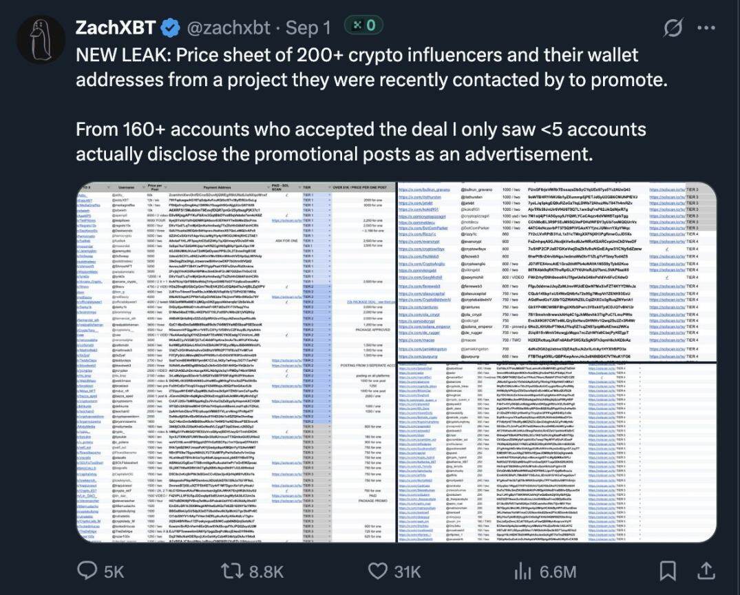 最近,Zachxbt 发布了一个谷歌表格,列出了一批从某项目方获得报酬的账号。我提及此事并非因为惊讶,而是因为这些报酬金额相当可观,尤其是与 Kaito 「创作者排行榜」 上的项目相比。