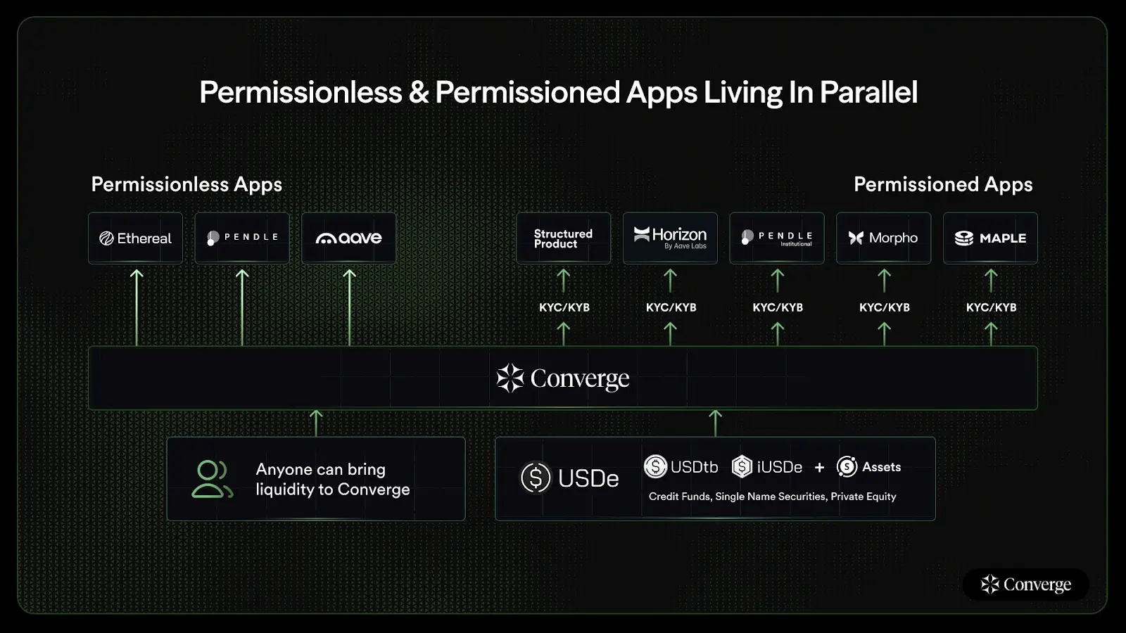Converge是一条很有意思的区块链,它最大的特点就是"双重性"——既可以是完全开放的DeFi乐园,也可以是严格合规的金融平台,用户可以根据需要选择不同的模式。想象一下,同一条公链上,散户可以自由地参与各种DeFi挖矿和交易,而银行和基金等机构则可以在合规层面进行受监管的数字资产业务,两者互不干扰但又能互相受益。在费用方面,Converge支持用USDe和USDtb这些稳定币直接支付手续费,成本完全可控。这种设计特别适合那些想要同时服务散户和机构客户的项目——散户用户可以享受DeFi的高收益和创新玩法,机构用户则可以在满足合规要求的前提下参与数字资产投资。简单来说,Converge想要打破传统金融和DeFi之间的壁垒,让两个世界能够和谐共存并相互促进。
