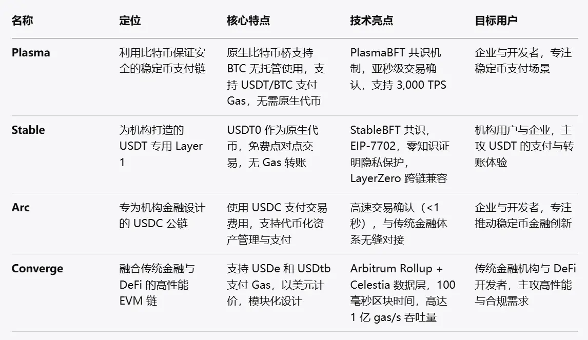 通过以上对各个稳定币公链核心理念的介绍,可以明显感受到Ethena的Converge与其他三者存在显著差异。从定位来看,Plasma、Stable和Arc都将自己定义为支付基础设施,专注于让稳定币转账变得更简单、更便宜,本质上是在用区块链技术改造传统支付体验。而Converge则明确将自己定位为DeFi创新平台,这与Ethena本身的基因相符。USDe与USDC、USDT等由现金和国债支持的传统稳定币不同,它通过Delta中性策略维持价格稳定,这种创新机制使得Converge天然更适合那些深度参与DeFi或对链上金融创新感兴趣的用户群体。