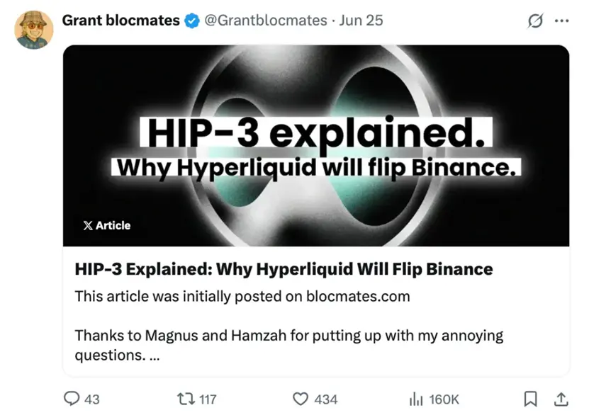 与大多数在“雇佣兵挖矿”后就销声匿迹的项目不同, Hyperliquid 在空投之后反而更加强大。各项指标都一路飙升, 正在成为首个真正能与币安等巨头竞争的 DEX 。