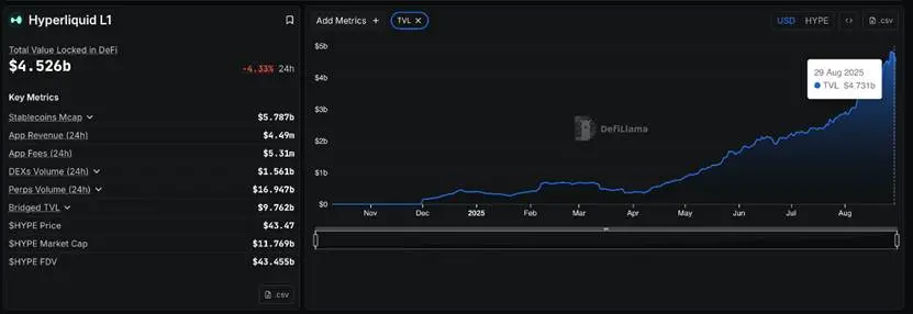 Hyperliquid 的 TVL 图表说明了一切——增长正在加速。
