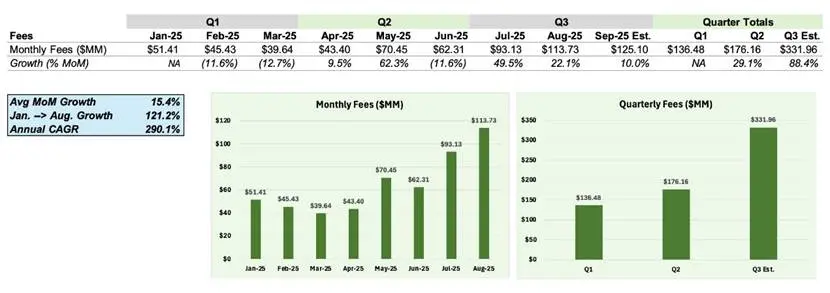 基于约 1.14 亿美元的月度费用,目前 Hyperliquid 年化收入约为 13.7 亿美元。由于 99 %的收入用于 HYPE 回购,理论上所有流通中的 HYPE 可以在不到 9 年内被完全回购——加密领域没有任何其他协议拥有如此强劲的经济模型。