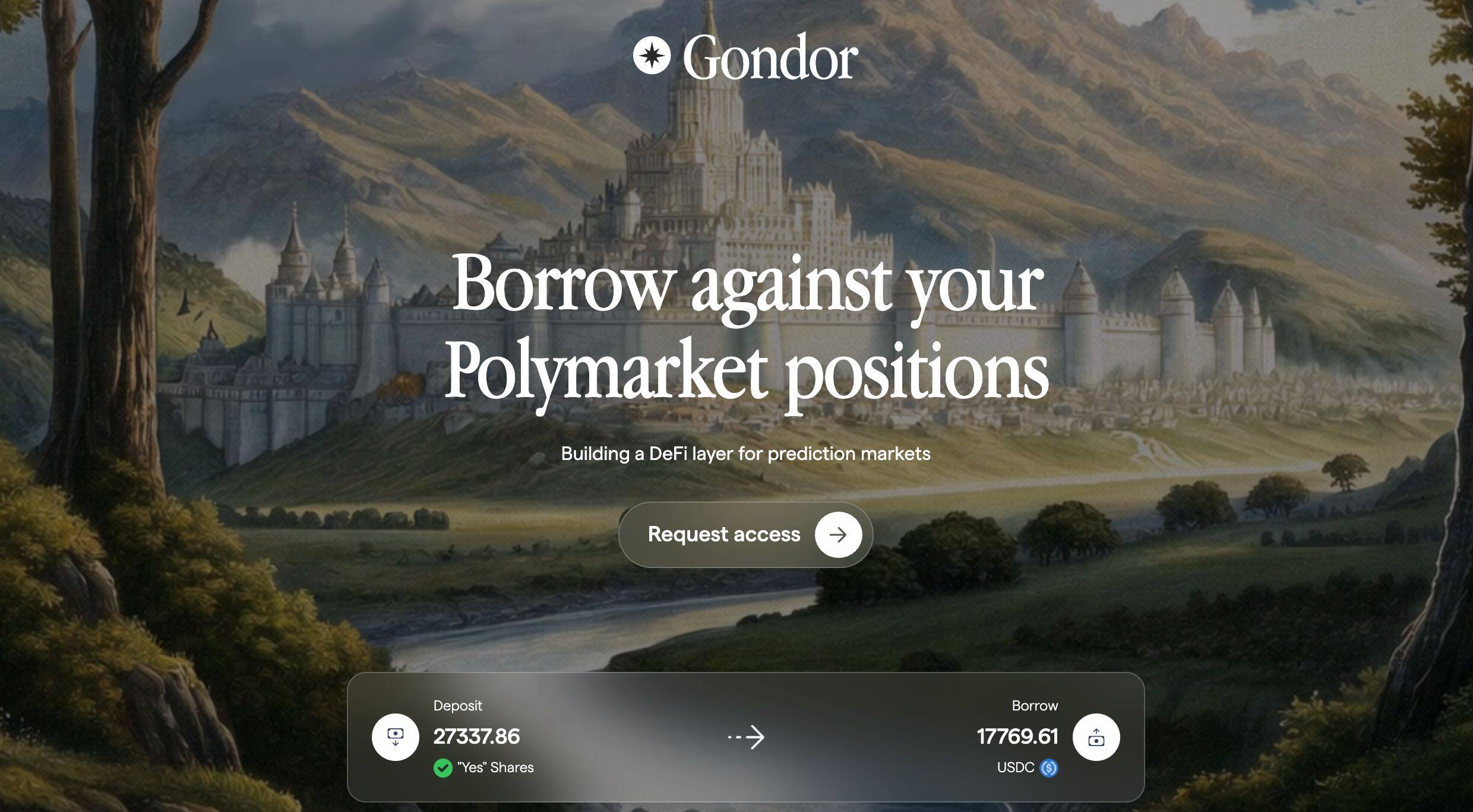简介: Gondor 致力于开发预测市场协议的 DeFi 玩法,目前推出了基于 Polymarket 头寸的借贷协议,Gondor 允许用户将 Polymarket 上的长期预测事件头寸抵押进行借贷,以释放其押注长期市场时被锁定的资本,其天使轮融资获得 Maven 11 的支持。