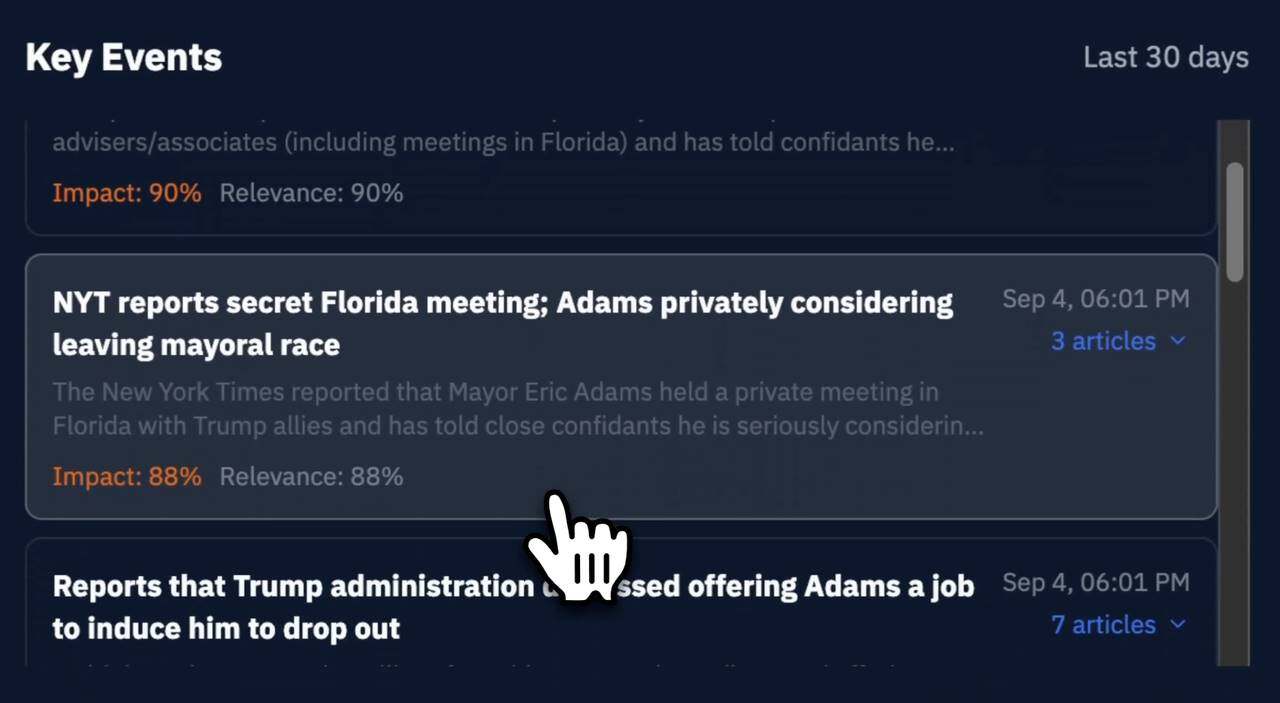Verso Trading 则构建了更智能的新闻引擎,将重复的新闻标题整合为单一事件,并提供影响力和相关性评分。这让用户看到哪些新闻真正影响了 Kalshi 的合约价格,该平台也即将推出低延迟实时预警功能,当新闻或推文可能影响市场时立即通知用户。