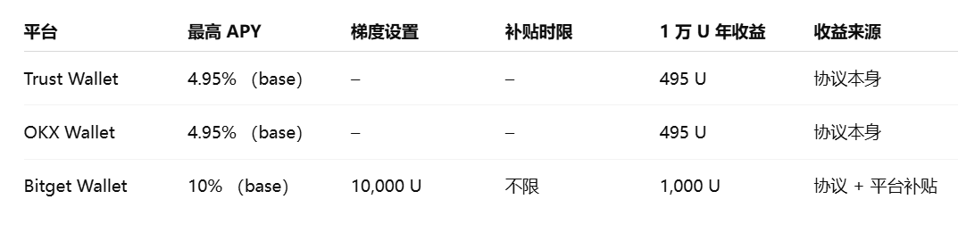 - 高息的长期性: 并非一次性补贴,而是通过「协议利息 + 平台永久补贴」的组合机制,将 10% 收益转化为常态化水平;