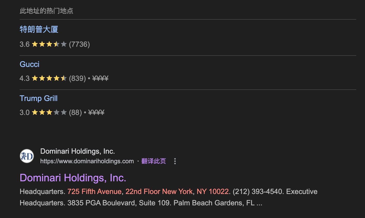 Dominari 的官网显示,公司总部就设立在特朗普大厦的 22 层。Wool 的办公室可以俯瞰中央公园。而他们现在每月付的租金是 62,242 美元。