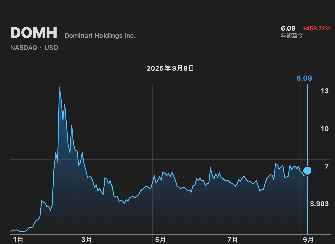 在沾上特朗普家族和加密叙事之后,它的股价也从年初的 1.09 美元涨到 6.09 美元,涨幅超过 450%。