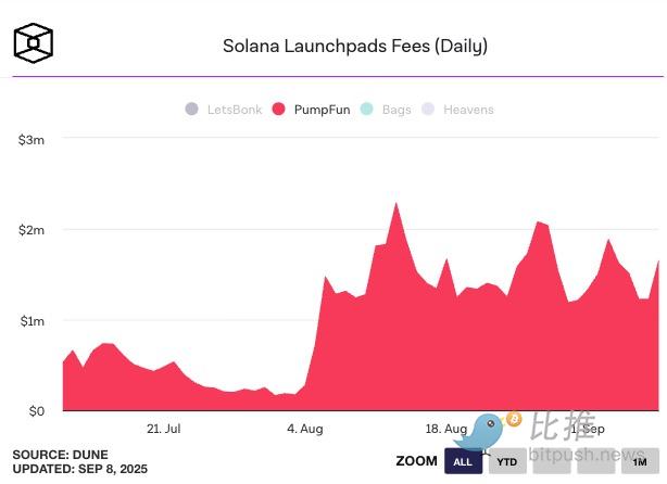 2025 年 8 月份,Pump.fun 凭借 8 亿美元的累计收入和超过 70% 的市场份额继续领跑,而且平台并没有停留在「meme 赌场」的标签,而是通过直播、CCMs(创作者资本市场)、Ascend 动态费用机制等一系列动作,进一步巩固其霸主地位。