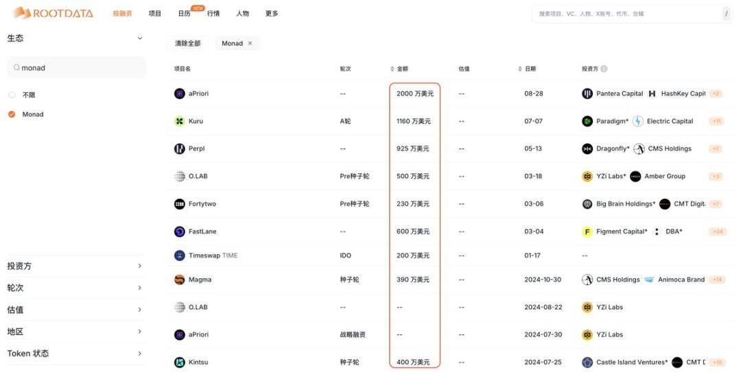 机构们爱屋及乌,Berachain 和 Monad 上的原生生态协议同样受到资本的青睐。Berachain 生态明星协议 @InfraredFinance, 三轮共计完成近 2000 万美元融资;估值 2000 万美元的 @honeypotfinance; Berachain 创始人和不少熊链 OG 参与融资的 @origami_fi 等等;