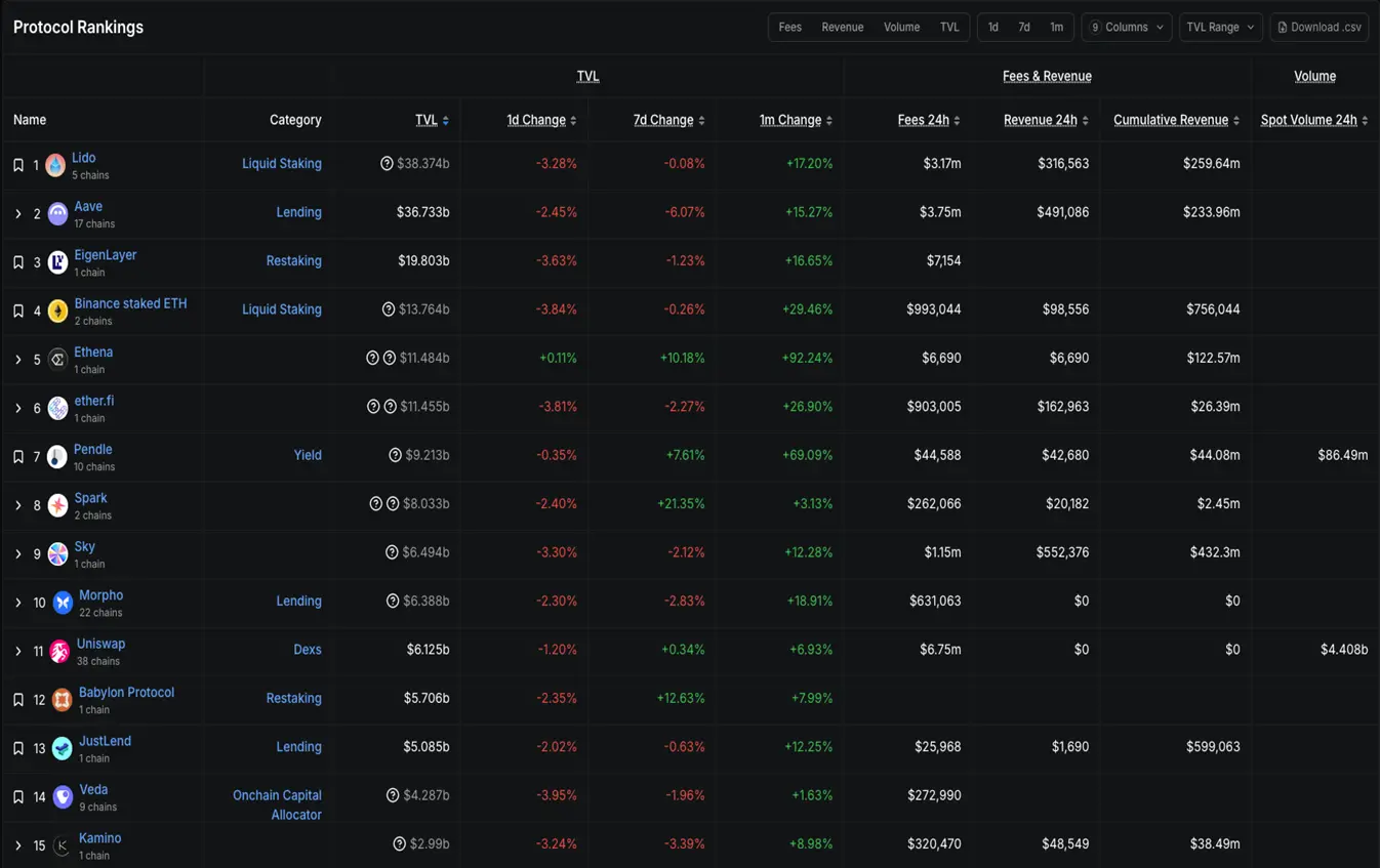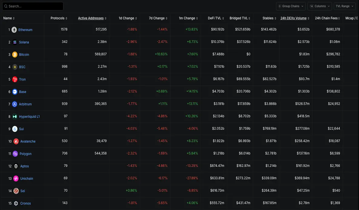 【图表 1.7:DeFiLlama 公链 TVL 排行榜】
