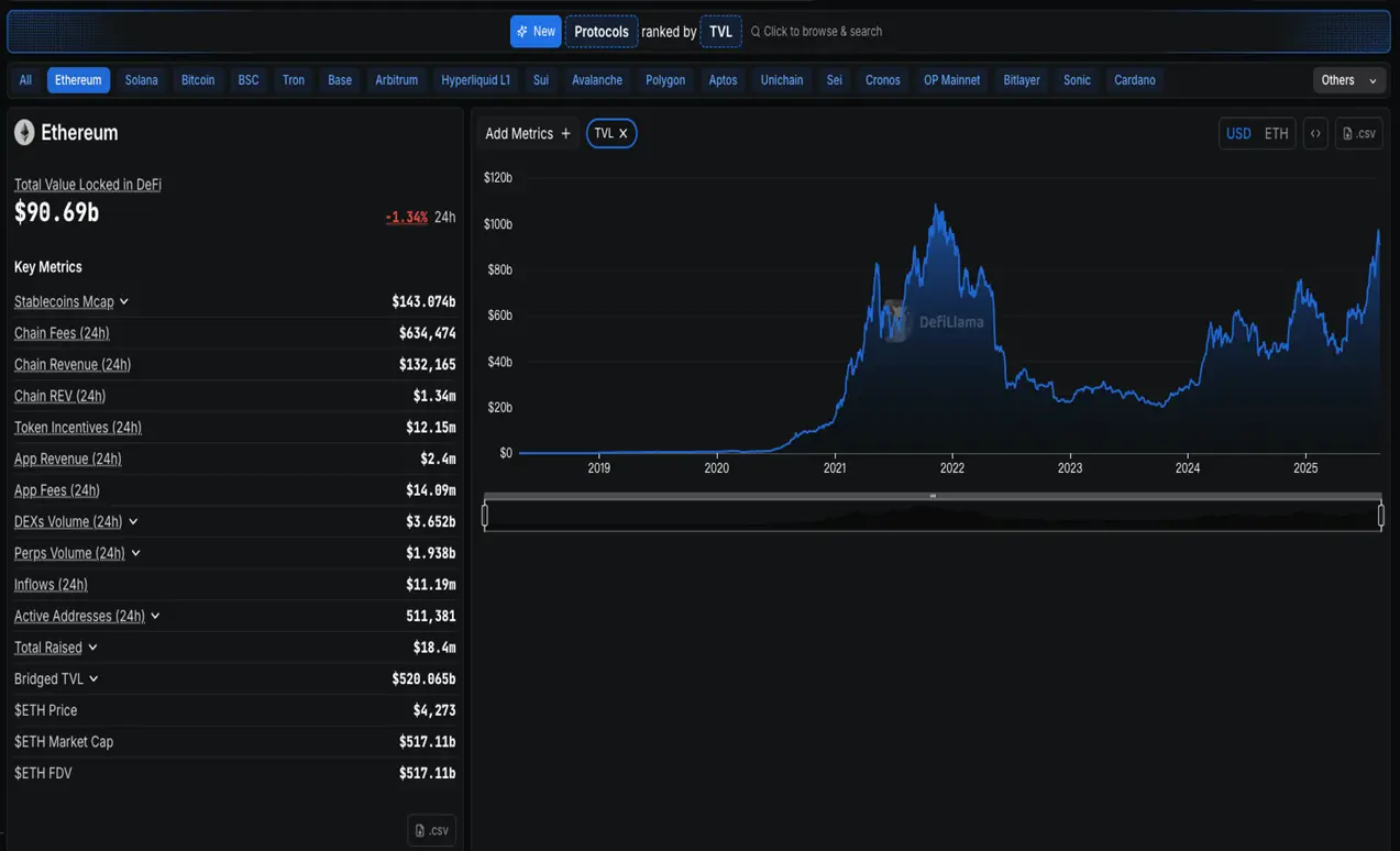 2021 年,BSC 凭借“低费长尾资产”的叙事,市占率迅速拉升至近 20%;同年底,Terra 则依靠“Anchor 20% 收益率”的极限叙事,在短时间内吸纳天量资金,但也因叙事过热而迅速崩盘,揭示了风险。2024-2025 年,Solana 成功抓住了“高性能交易 + Meme”的叙事窗口,而以太坊则凭借“深度流动性与多样化应用”的稳健叙事,在市场热点切换时展现出更强的韧性。