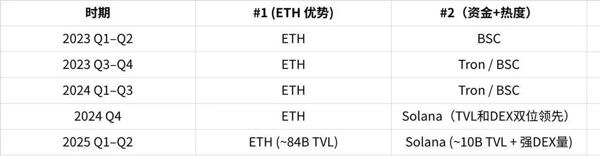 【图表 1.4:主流公链位次变化概览 (2023 Q1 - 2025 Q2)】