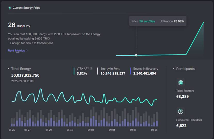 更关键的是,随着8月29日波场TRON能量单价直降60%,JustLend DAO于9月1日同步响应,将能量租赁“基本税率从15%降至8%”。 用户如今在JustLend DAO租赁能量,可享受“能量基础单价下调+租赁税率降低”的双重优惠。