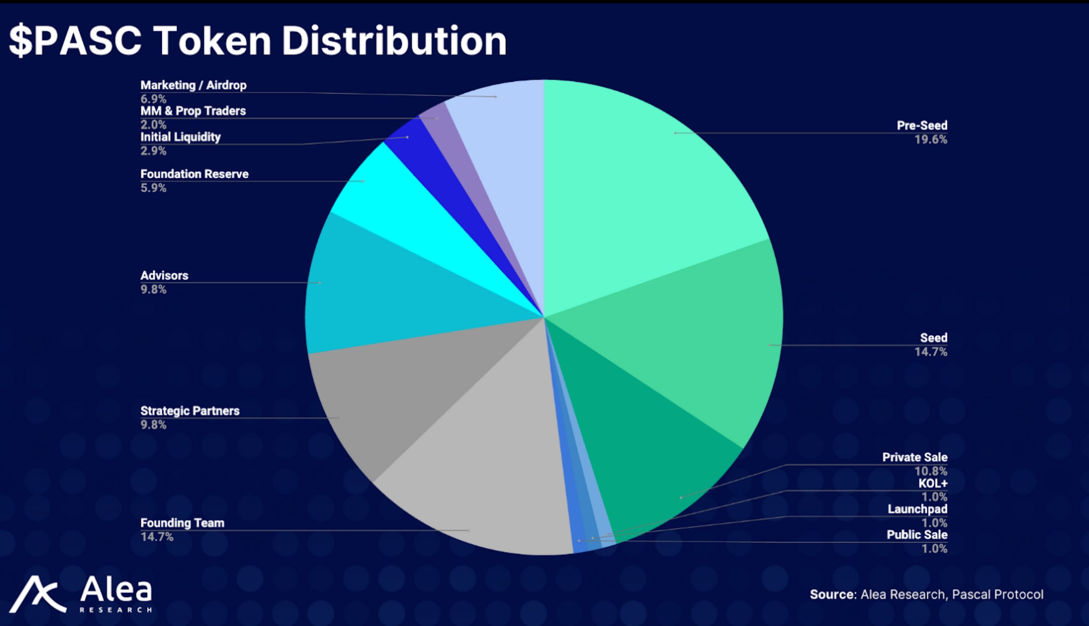 $PASC 代币于 9 月 9 日进行 TGE,使持有人获得清算所的权益。代币分配如下: