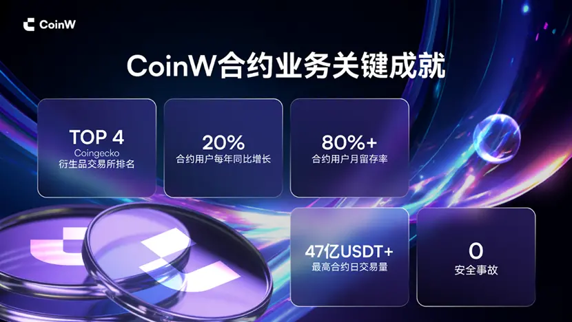八年来, CoinW 始终坚持以用户为中心、以安全为基石、以创新为动力,在合约业务的每一个细节中践行 “ 长期主义 ” 。