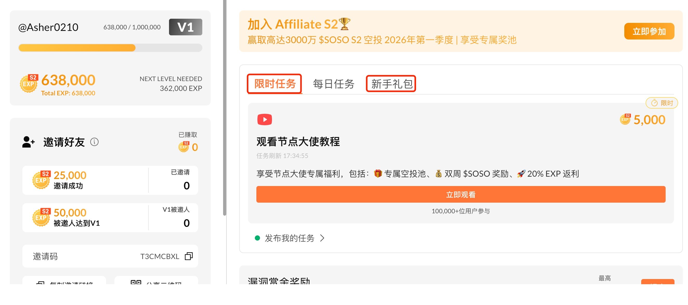 STEP 3. 此外,完成“限时任务”与“新手礼包”获得更多 Exp 积分。