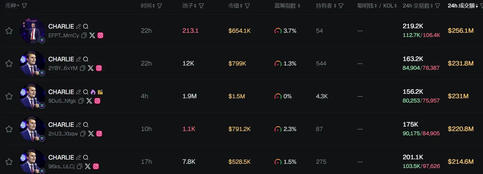 过去 24h Solana 热门代币前五依次为:CHARLIE、CHARLIE、CHARLIE、CHARLIE、CHARLIE