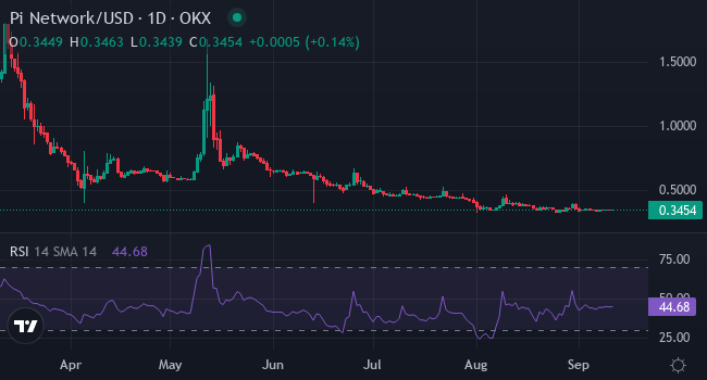 在经历震盪的一周后,PI 价格在 0.33 至 0.36 美元的窄幅区间内盘整。该代币近 7 日下跌 2.68%,近一个月跌幅为 13.30%。而过去六个月的表现更为严峻,价格暴跌 77.35%,使市场情绪趋于谨慎。