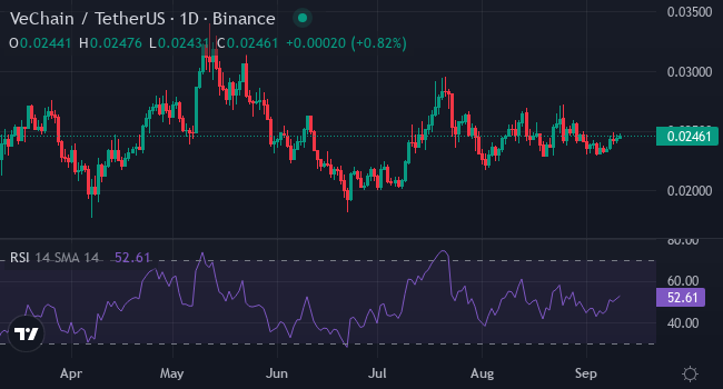 VeChain(VET)价格略有下滑,目前在 0.02187 至 0.02511 美元区间交易,与 10 日均缐(0.02475 美元)和 100 日均缐(0.02400 美元)几乎持平。近一周下跌 2.74%,一个月跌 4.05%,六个月则跌 1.94%。整体跌幅温和,显示市场处于盘整阶段,而非恐慌性抛售。