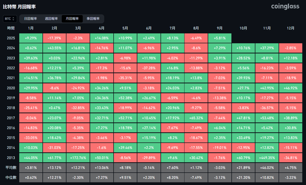 C oinDesk 分析师 James Van Straten 于 9 月 12 日发表最新分析文章 指出 ,比特币的月度表现模式显示,本月比特币的价格低点可能已在月初形成,市场普遍认为的「九月魔咒」,即比特币在九月通常表现疲软的季节性现象,有望被打破。