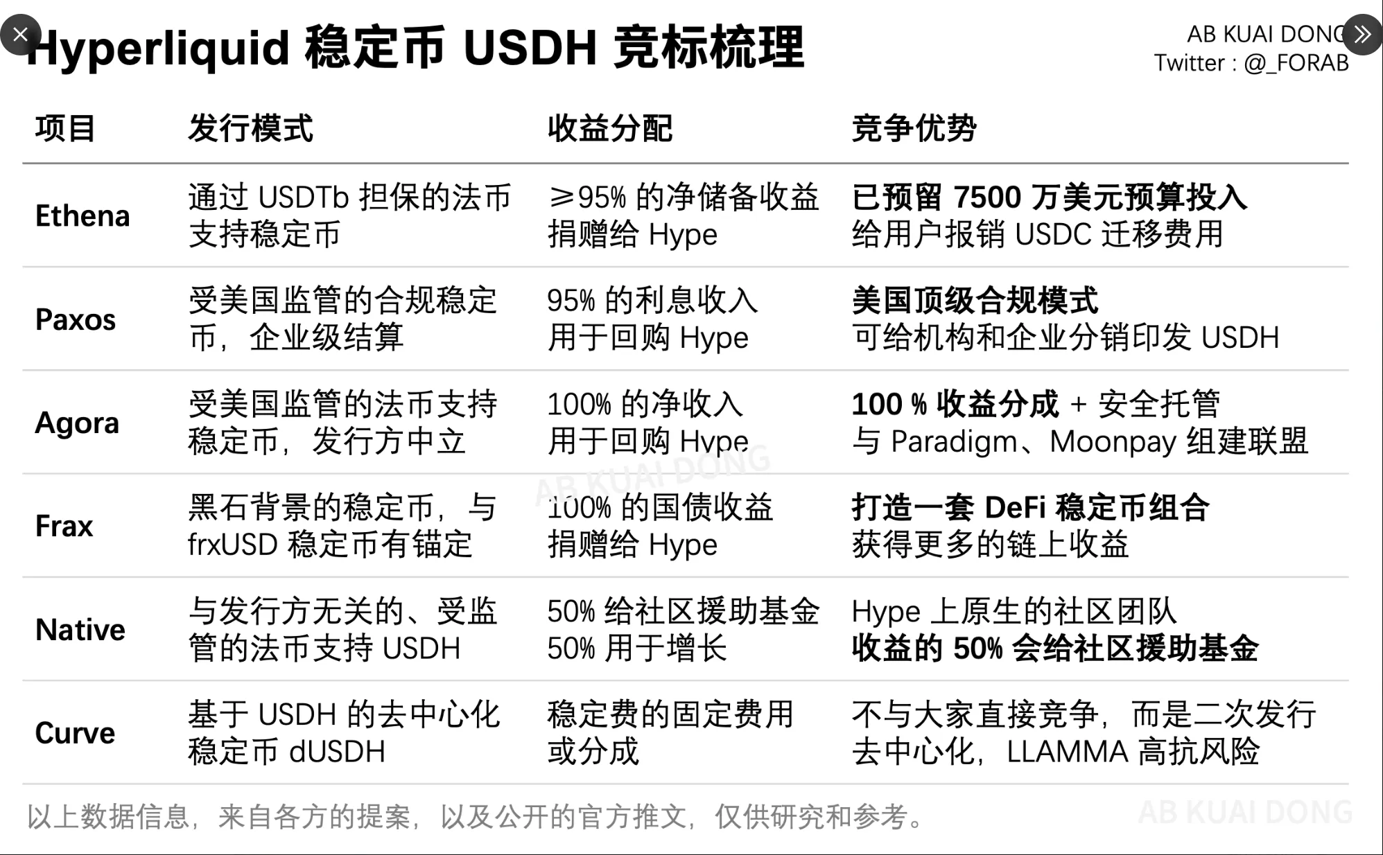 因此,不论是从平台理念还是从平台收益上来讲,Hyperliquid 发行自己的原生稳定币都是势在必行。