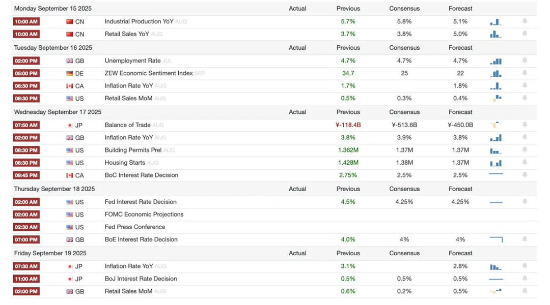 下面将从宏观事件前瞻、比特币热度指标、市场全景回顾以及核心经济数据解读等角度展开具体分析,数据截止到 2025 年 9 月 14 日。
