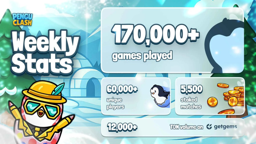 2025 年 5 月,胖企鹅与 Elympics 合作,在 TON 区块链推出技能型游戏《Pengu Clash》,核心玩法为「将对手推下冰山」,规则简单但兼具策略性。