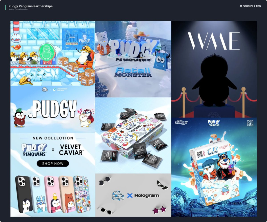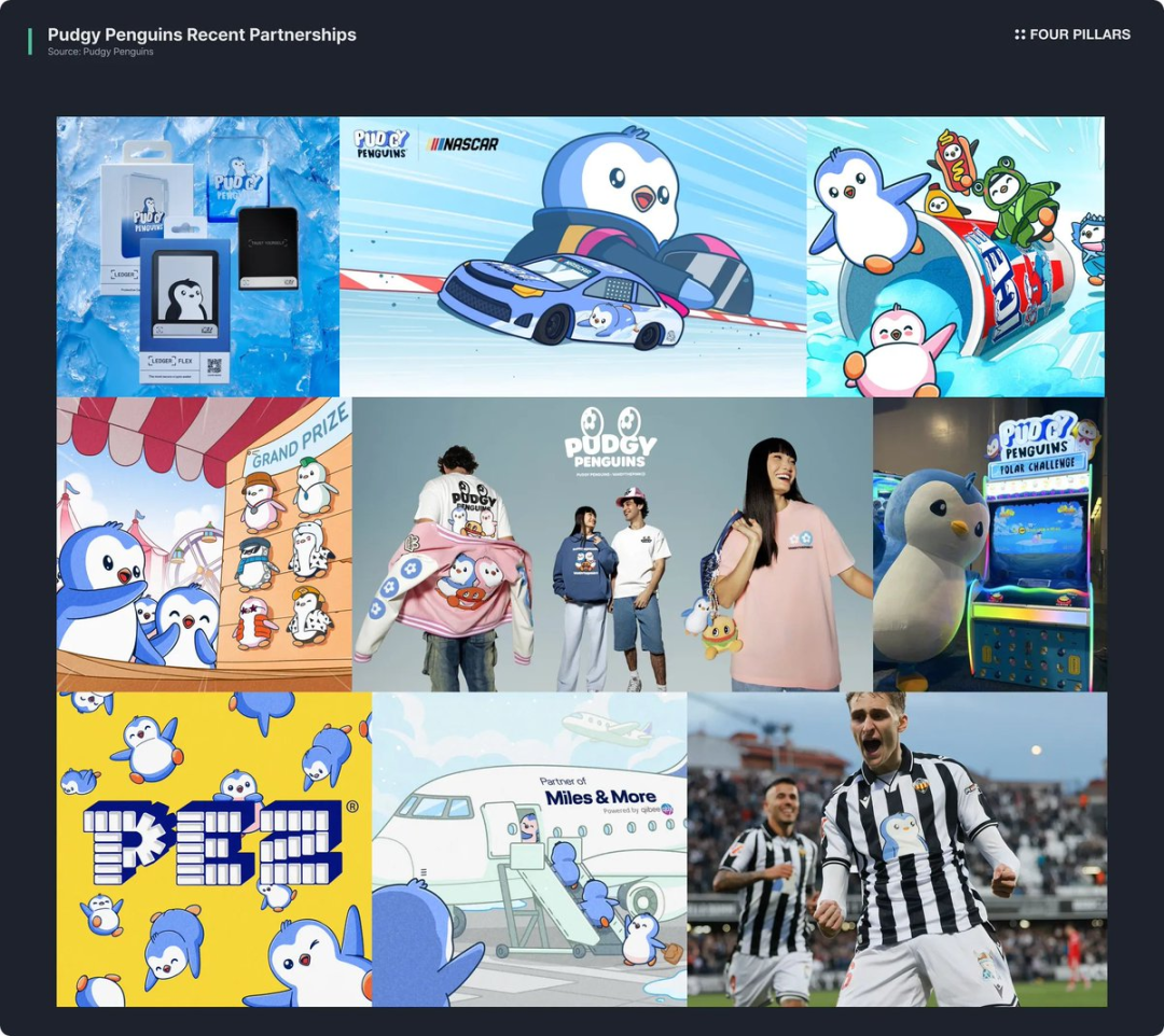 - 2022 年经历创始人罢免危机后,胖企鹅 Pudgy Penguins 在 Luca Netz 收购下实现重大转型,通过社交媒体策略与合作获得品牌影响力,并成功拓展实体玩具业务。