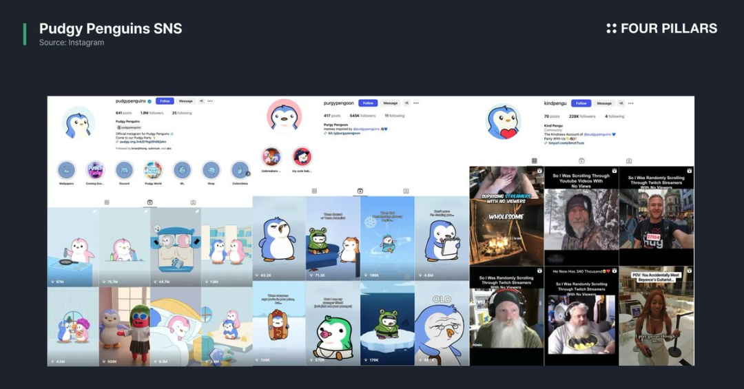 胖企鹅从 NFT 项目升级为全球 IP 的核心策略之一,是通过社交媒体与 Web 2 行业渗透强化品牌力: