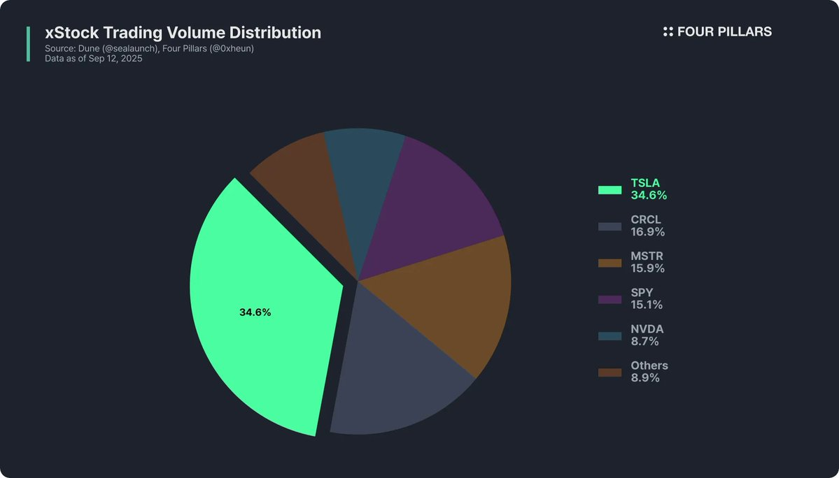 xStocks 提供代币化股票服务,让投资者能够实时交易热门美股(如特斯拉)的代币化版本。尽管仍处于早期阶段,但已经展现出一些有趣的现象。