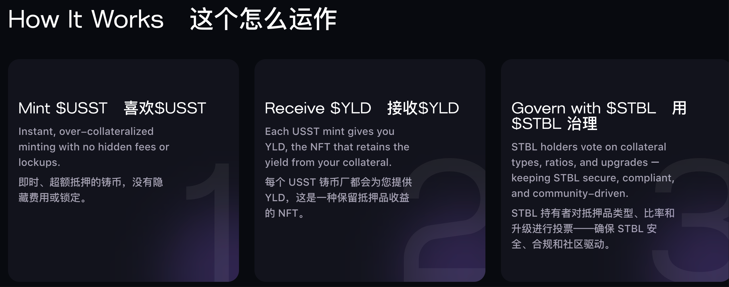 - 对于机构而言,借助 USST 及 YLD 能够将闲置的现金资产转化为透明、合规、可创收的资产、现金流;