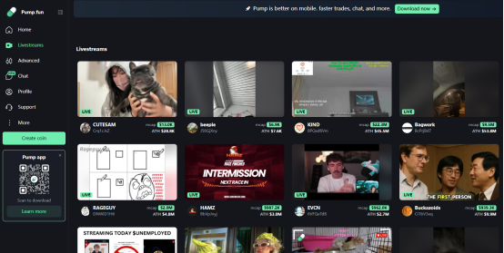 除了最直观的收入外,该种直播模式对主播也更为友好。传统直播模式已然具备成熟的产业链条,中间商与平台是核心驱动力,主播更像是一种台前商品,而pump.fun中减少了体系的复杂性,主播的角色更为鲜明,即便新人创作者也更有机会。