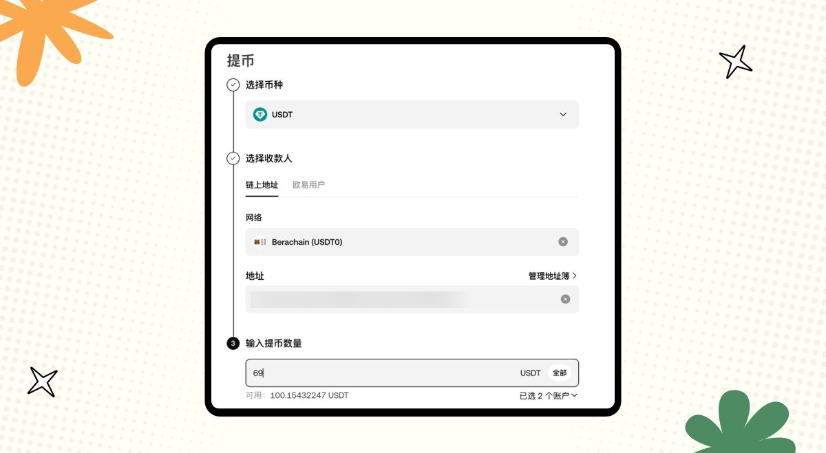 入口侧的 基础设施进展 亦在加速:交易所 OKX 已宣布支持 USDT0 的充提,并覆盖 Berachain 等多条网络 。这意味着用户在中心化平台提币时,直接选择“USDT → Berachain(USDT0)”即可,将习惯中的 USDT 资金一键导入目标链,随后在 BEX 参与 LBP 或二级交易。这一改进显著降低了 BTC-Fi 新用户的迁移门槛,也使稳定币侧的新增流动性更快抵达实际发生价格发现的场域。( OKX )