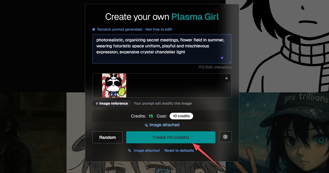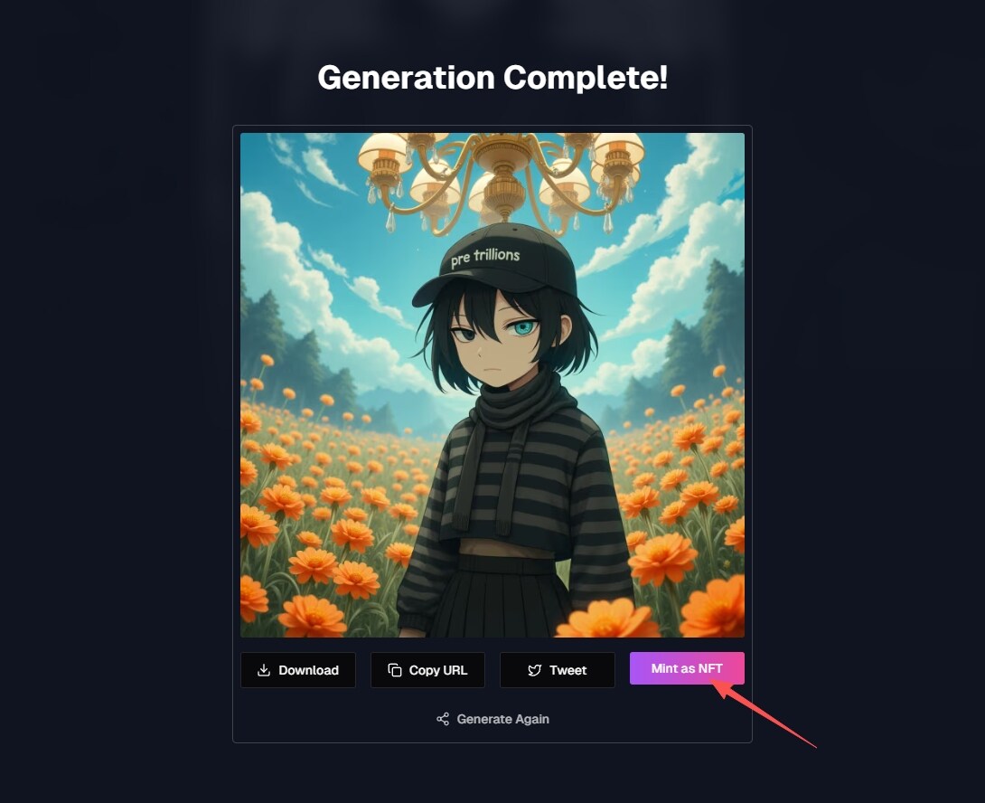 STEP 3. 按照页面提示输入提示词或点击随机,生成一个图片并制作成 NFT(需要在钱包中把网络切换至 Plasma 测试网)。