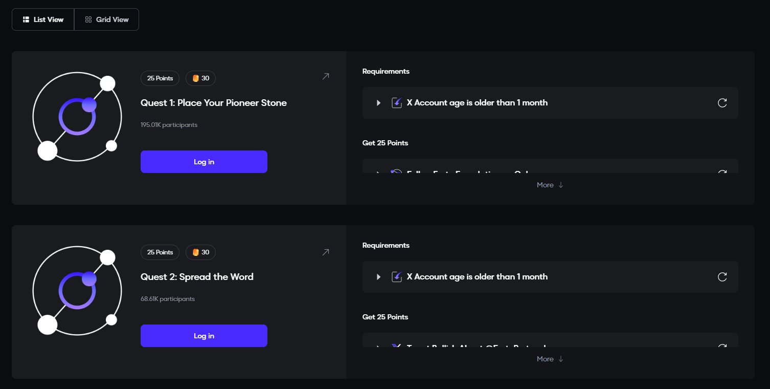 进入 Galxe 任务(链接: https://app.galxe.com/quest/ForteProtocol/GCeVLt6Gpk ),共更新 2 大任务,分别为:Place Your Pioneer Stone、Spread the Word,需 X 账号注册时长超过 1 个月,共 50 积分,均为社交类任务,易完成。