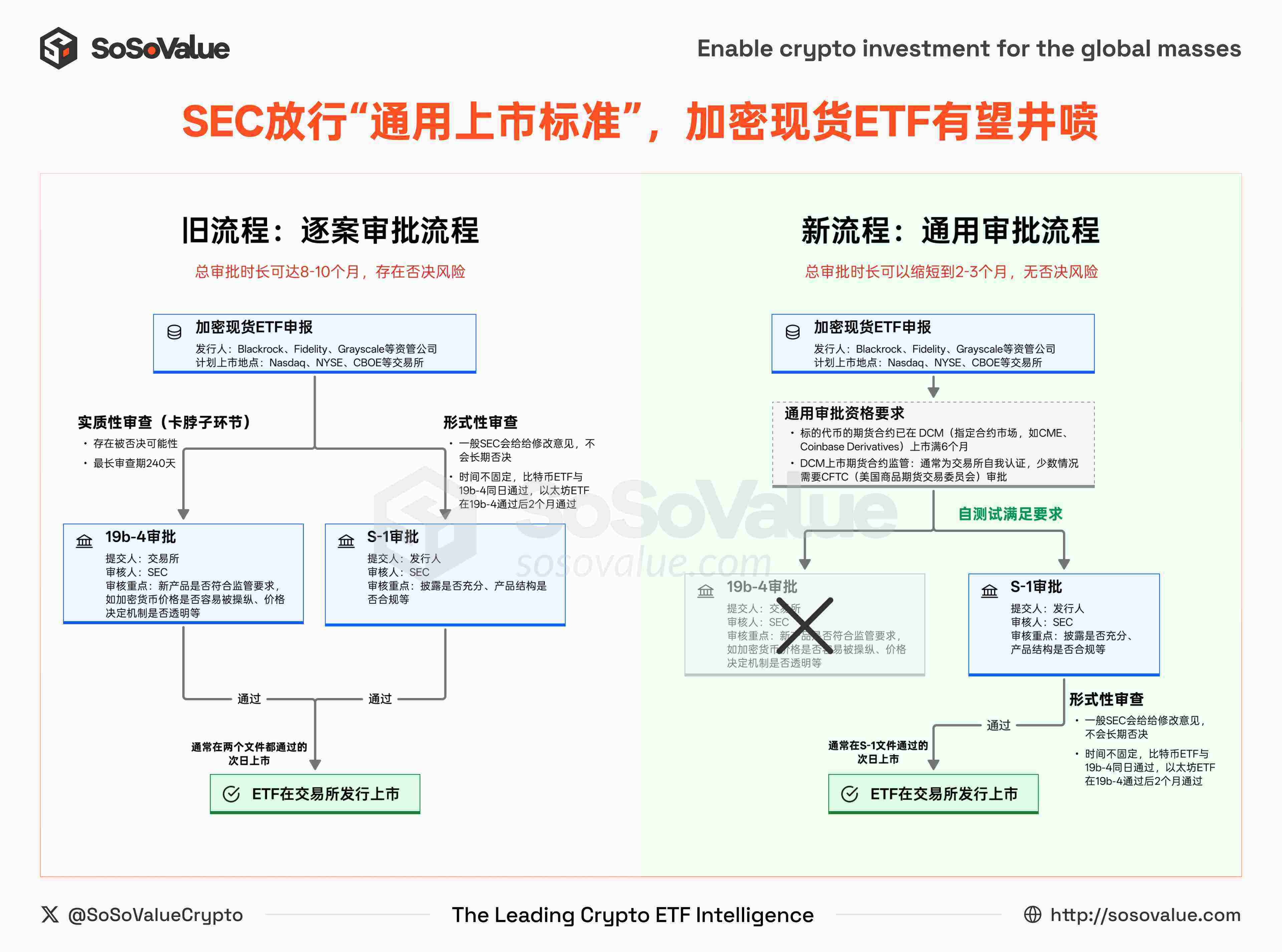 图 1:新旧加密现货 ETF 上市审批流程(数据来源:SoSoValue)