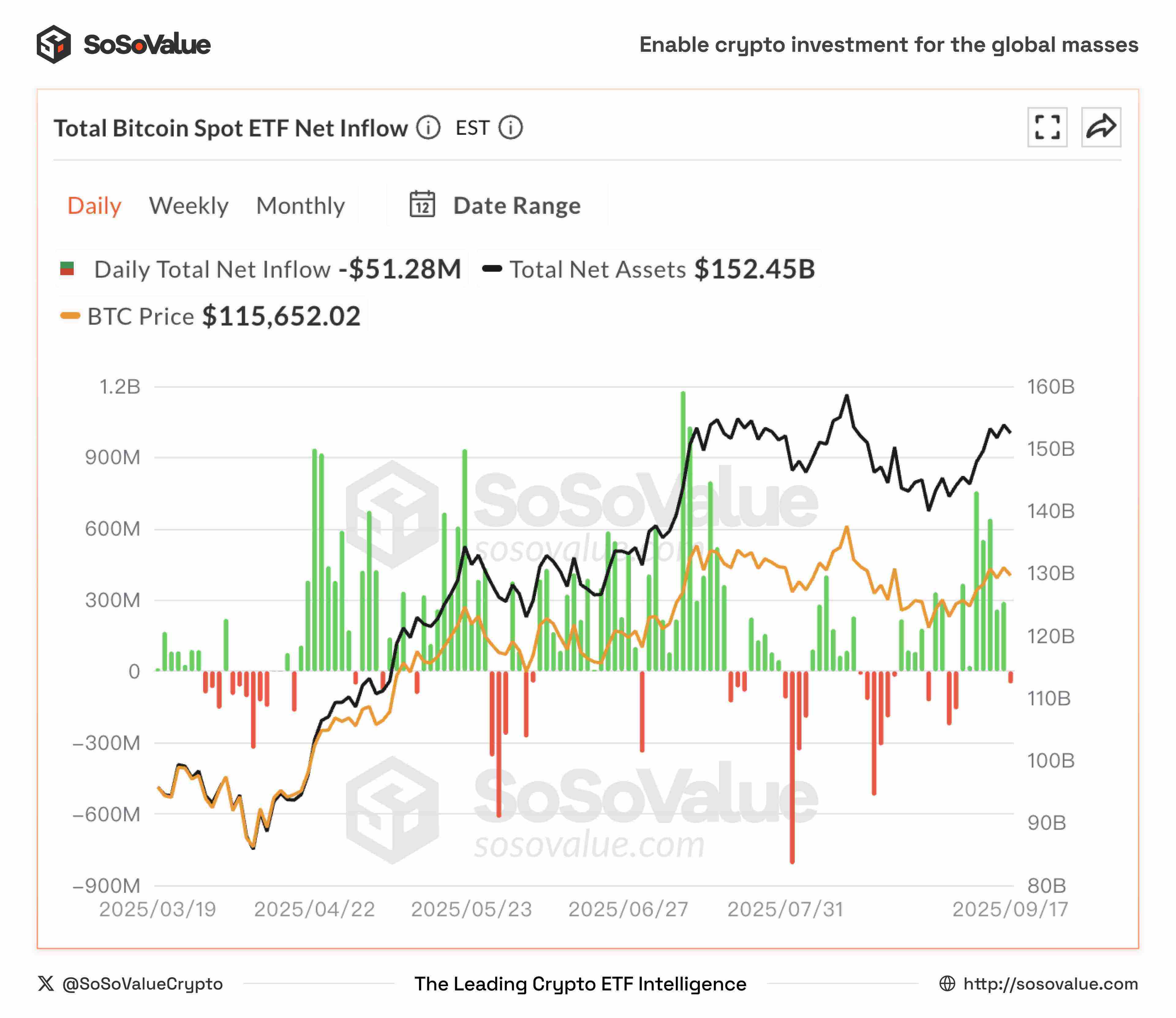 图 5:比特币现货 ETF 单日净流入(数据来源:SoSoValue)