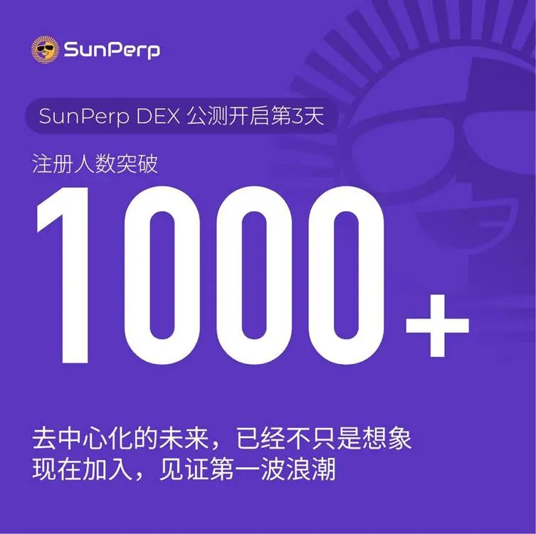 目前SunPerp正处于早期公测阶段,截至9月20日,即公测第3天,注册人数已突破1,000。短期内,团队的首要任务是专注打磨产品,保障交易流畅性与市场深度,并持续扩大资产覆盖面,及时上新热门资产,在用户体验方面夯实基础。至于更多用户增长方面的功能,将会在后续的版本中不断迭代。