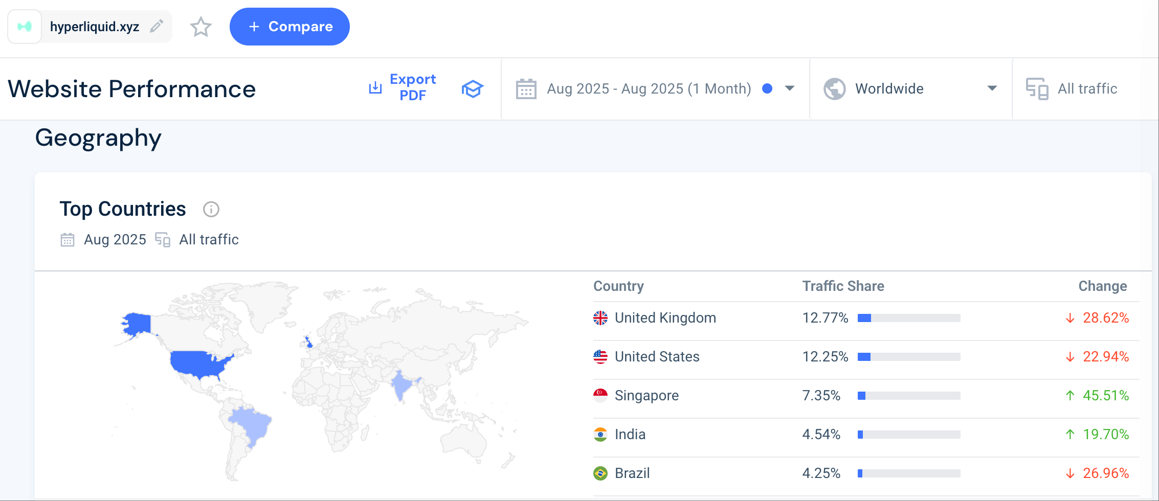 HYPE TGE 后,Hyperliquid 交易量不降反升,大家看意识到不对劲,大部分的共识是加密市场迫于监管合规压力,主流 CEX 在欧美市场难以开展业务,如币安。这部分“流失”的用户被 Hyperliquid 承接(从 Hyperliquid 网页用户访问分布可以窥见一斑)。另外还有一些不太“方便”KYC 的 Money,也找到了一个合适的工具。
