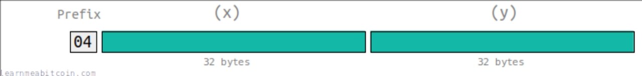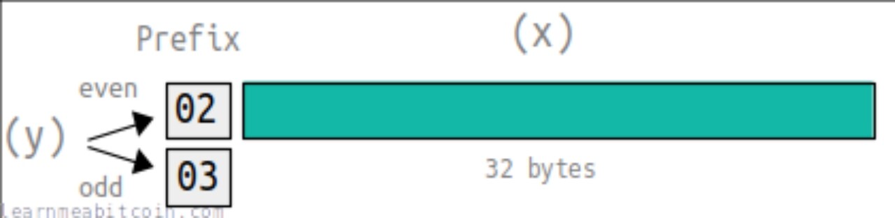 在比特币中,公钥分为普通公钥(uncompressed),压缩公钥(compressed)。普通公钥是未压缩的公钥,以 04 开头表示,65 字节长度。压缩的公钥以 02(偶数)或 03(奇数)开头表示,33 字节长度。