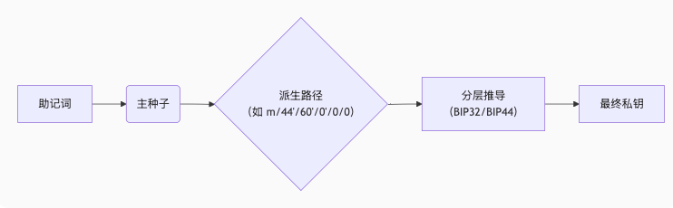 说明:注意,Solana 的路径在最后使用了强化派生 0',而不是普通的 0。这是其标准做法。