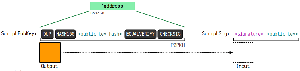 交易过程:当你支付时,你必须拿出你钱包里的一张或几张“支票”(输入),它们的总面值必须大于或等于你要支付的金额。交易会创建两个新的“支票”: