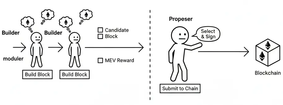 这种分离让验证者的工作变得简单,不再需要复杂的硬件和算法,从而保护了网络的去中心化。目前,一个名为 MEV-Boost 的外部方案已经实现了 PBS 的思想,未来目标是将其直接内置到以太坊协议中(ePBS)。