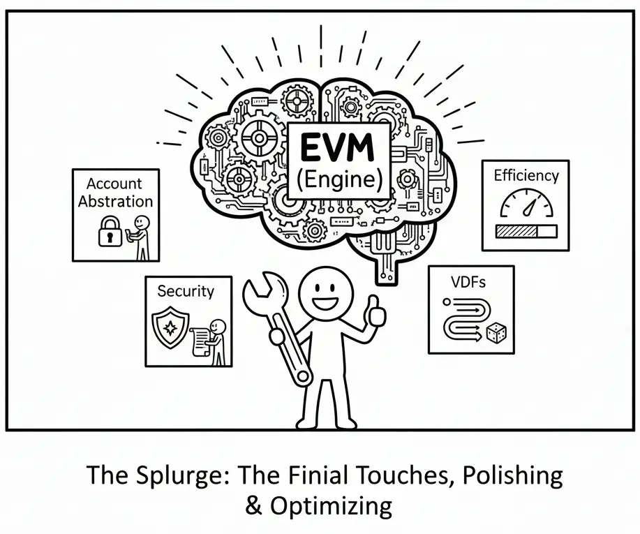 在 2025 年 5 月的一篇重要文章《简化 L1》中, Vitalik 提出了一个核心理念:以太坊应该学习比特币协议的“简洁之美”。过于复杂的协议会增加出现漏洞的风险、抬高维护成本,并使普通人难以理解和参与治理。“少即是多”在此体现得淋漓尽致 。