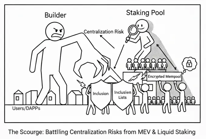 对 MEV 的追逐会带来中心化风险,因为只有技术和资金实力雄厚的大玩家才能构建最复杂的算法来攫取 MEV,这会挤压小验证者的生存空间,损害网络的去中心化。