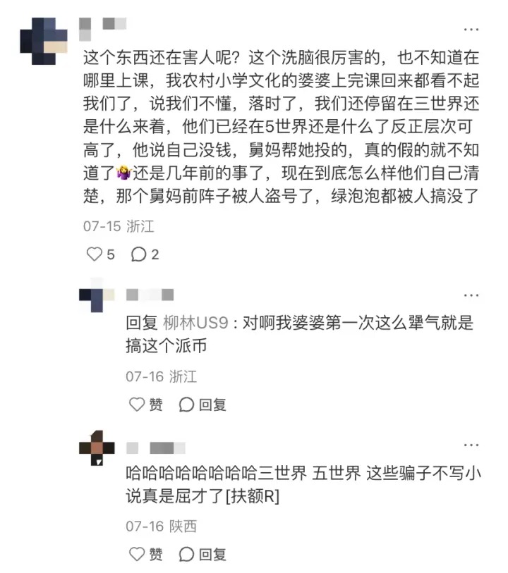 所以直到今天,已经被骗钱的老年人,还相信“有人在借着Pi币名头做坏事,但这和Pi币没关系,我还能发财”。