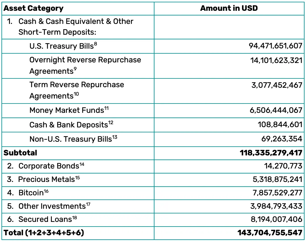 在高利率周期,这套模式的回报惊人。Tether 是最直观的例子,其 2024 年第四季度储备鉴证报告显示,公司全年利润达到 130 亿美元,其中约 70 亿美元来自国债与回购协议的利息,占总利润的一半以上。它持有的美国国债规模高达 908.7 亿美元,占总储备的 82.5%。