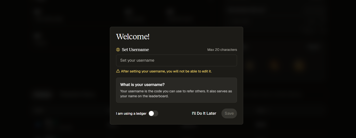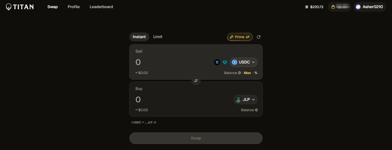 STEP 1. 进入交互网站(链接: https://app.titan.exchange/ ),连接 Solana 生态钱包后,设置昵称。